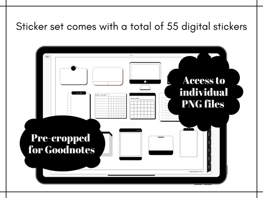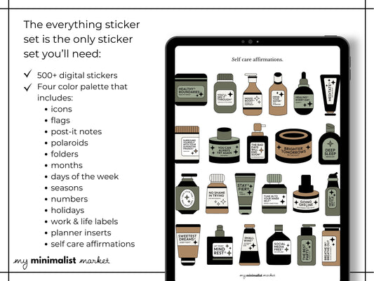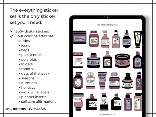 My Minimalist Planner's digital stickers are the absolute best companion to our digital planners and journals. Their minimalist design offer a sleek, paperless solution for staying organized and creative. Our minimalist collection combines functionality and aesthetics flawlessly, ensuring that your planning and creative endeavors are both efficient and stylish. Our stickers will bring fun and elegance to help streamline your tasks and inspire your work. Elevate your productivity and creativity today.