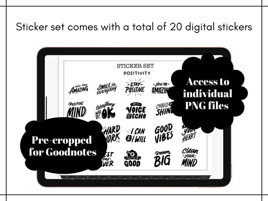 Minimalist Everyday Stickers, Positivity Labels Sticker Set, Digital Planner Stickers, GoodNotes 5 Elements, Precropped