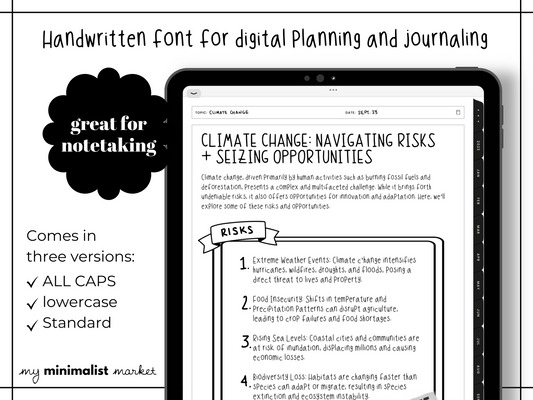 Neat Handwritten Font by My Minimalist Market, Cute Handwriting Font, Neat Handwriting, Digital Planner Font, All CAPS, lowercase, Standard