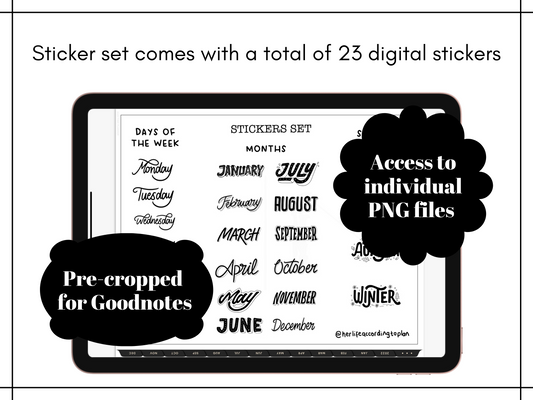 Minimalist Everyday Stickers, Days Months and Seasons Sticker Set, Digital Planner Stickers, GoodNotes 5 Elements, Precropped
