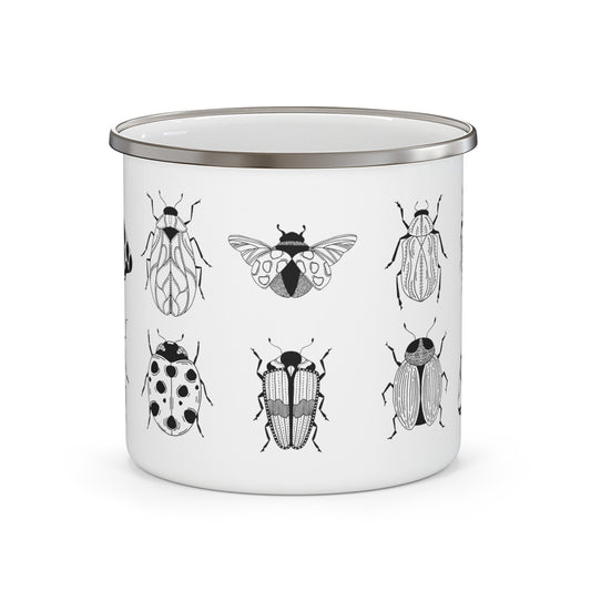 Minimalist Luxury Bug Noir Cup, Black & White Enamel Cup, Modern Monochrome Espresso