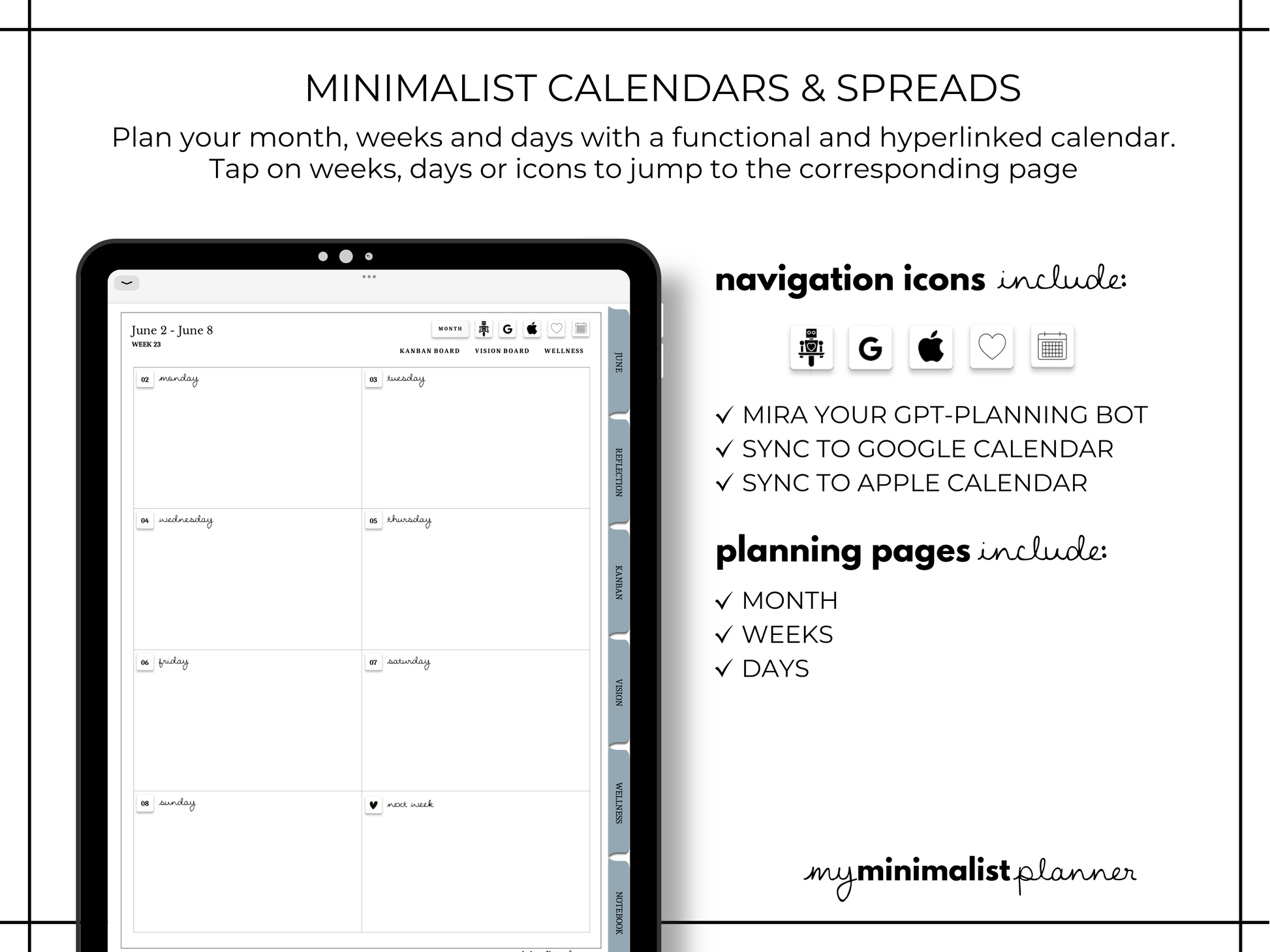 Not ready to commit to an annual digital planner? Not sure how to get started? Like the feel of starting a fresh planer? Get ready to completely revolutionize your to-do list and routine with our One Month Only Planner. With monthly, weekly and daily pages, a built-in notebook section and 4 different specialty life-planning templates, this is the only tool you need to get digitally organized in an elegant and minimalist way.