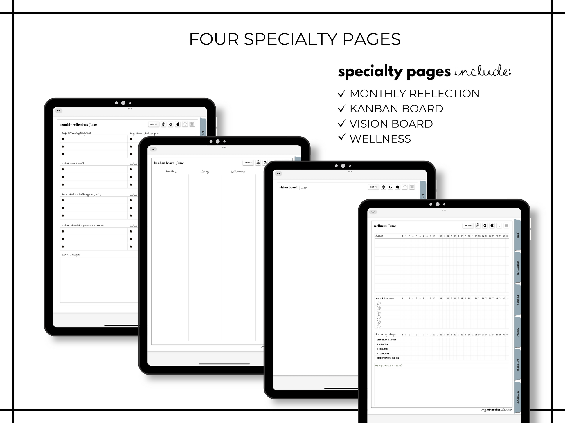 * Monthly Reflection, Vision, Kanban and Wellness Boards *