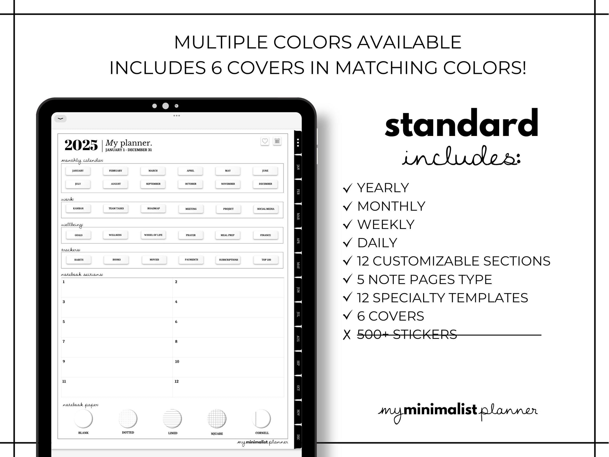 Get ready to completely revolutionize your to-do list and routine with our highly customizable 2025 Planner. With monthly, weekly and daily pages, 12 notebook sections and 12 different specialty life-planning templates, this is the only tool you need to get digitally organized in an elegant and minimalist way.