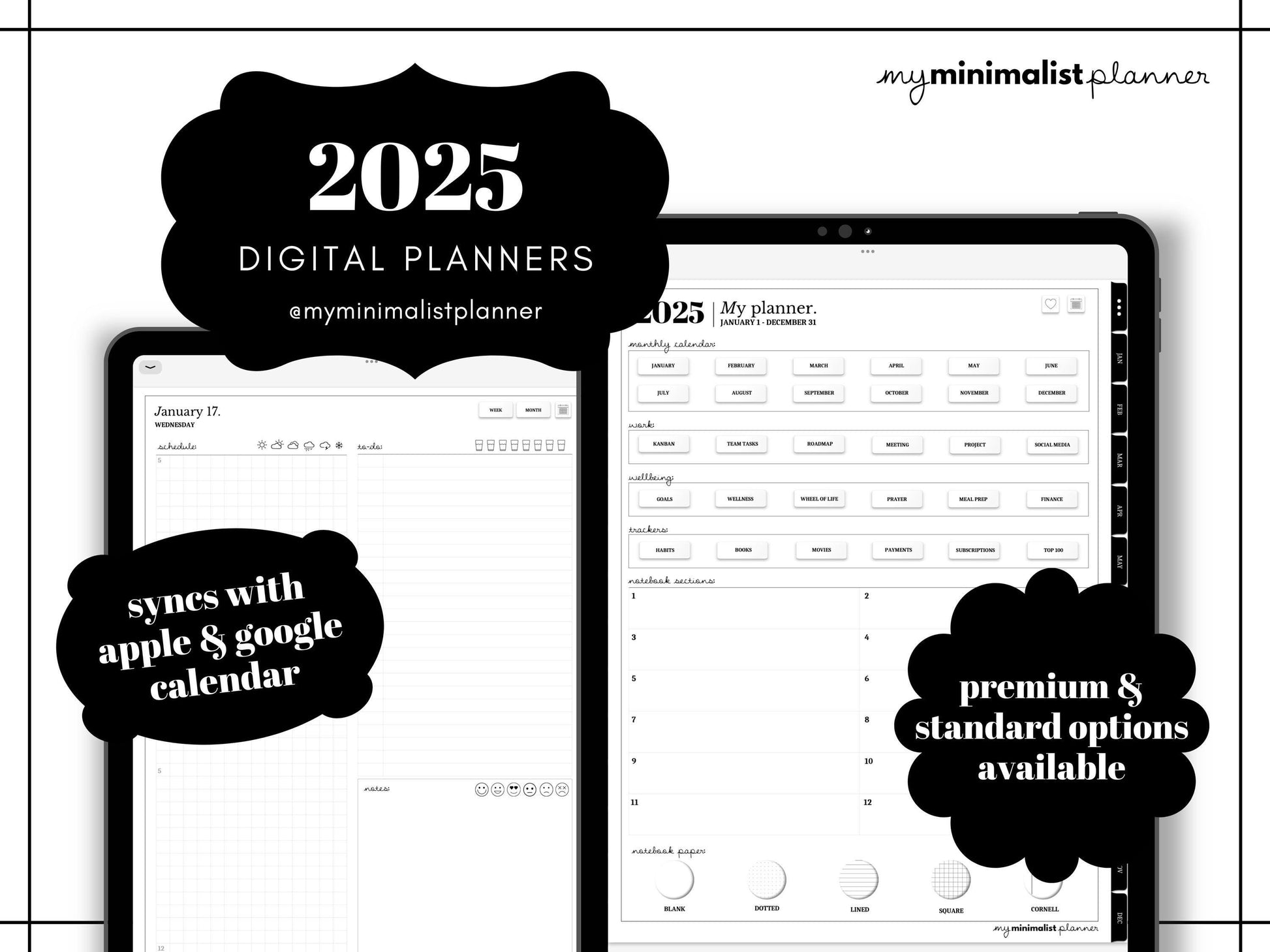 Get ready to completely revolutionize your to-do list and routine with our highly customizable 2025 Planner. With monthly, weekly and daily pages, 12 notebook sections and 12 different specialty life-planning templates, this is the only tool you need to get digitally organized in an elegant and minimalist way. Comes in a premium and standard version to accomodate to your needs.