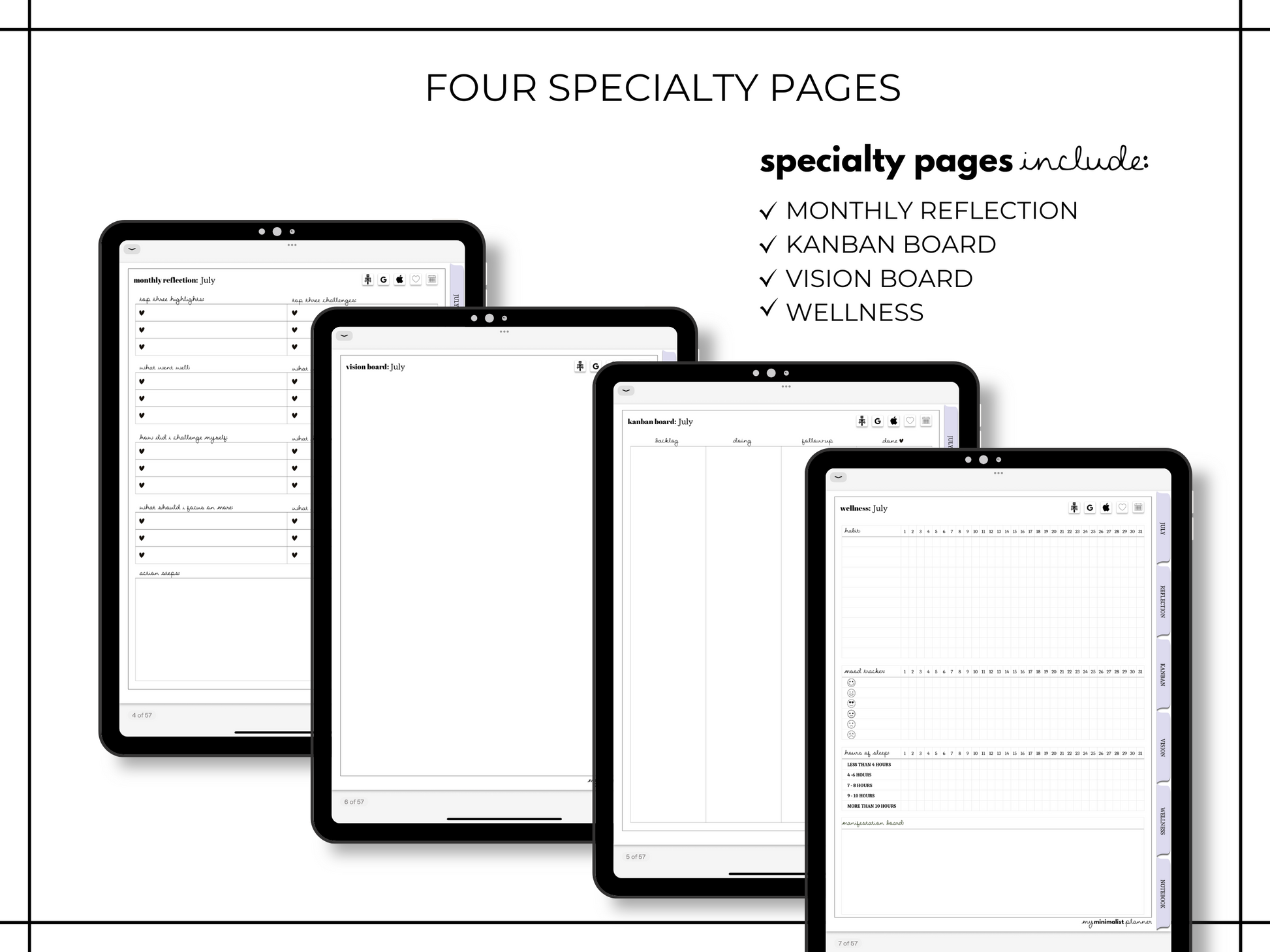 * Monthly Reflection, Vision, Kanban and Wellness Boards *