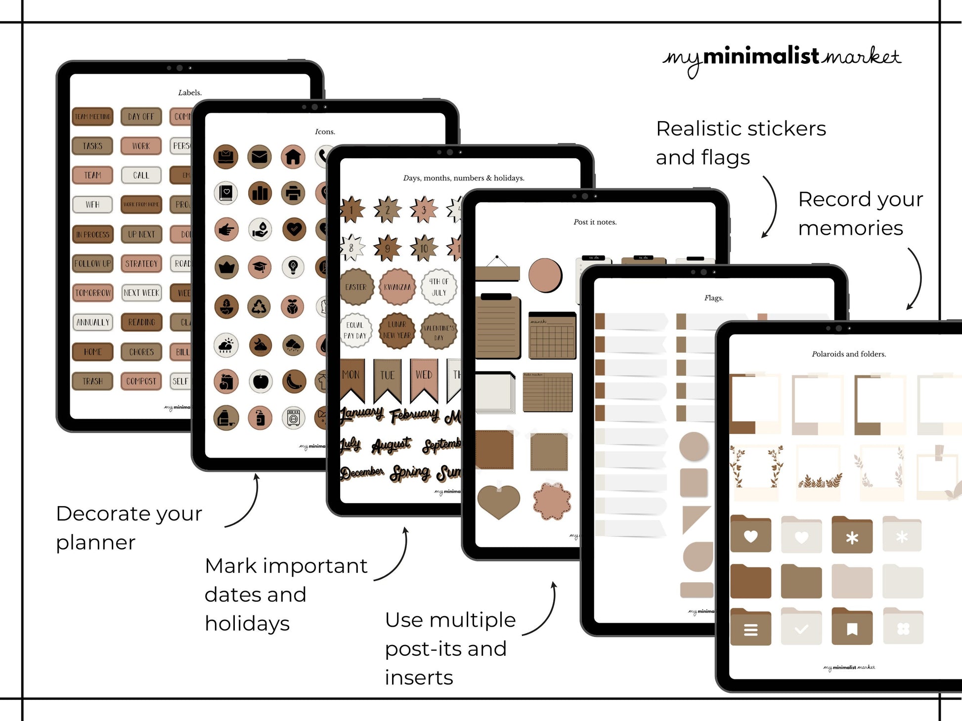 Everything Sticker Set "Boho Collection", Digital Planning & Bujo, Labels, Seasons, Holidays, Self Care, Icons and Post-its, Precropped