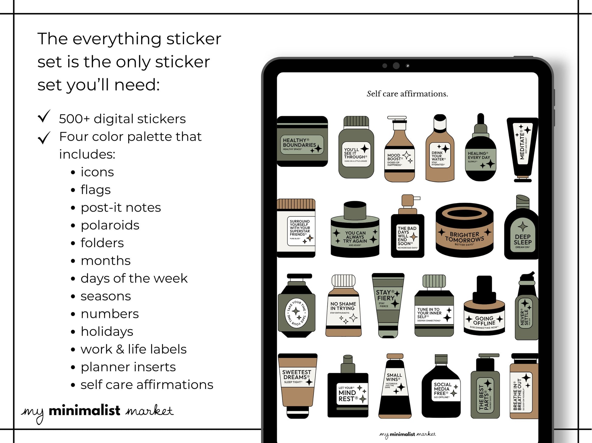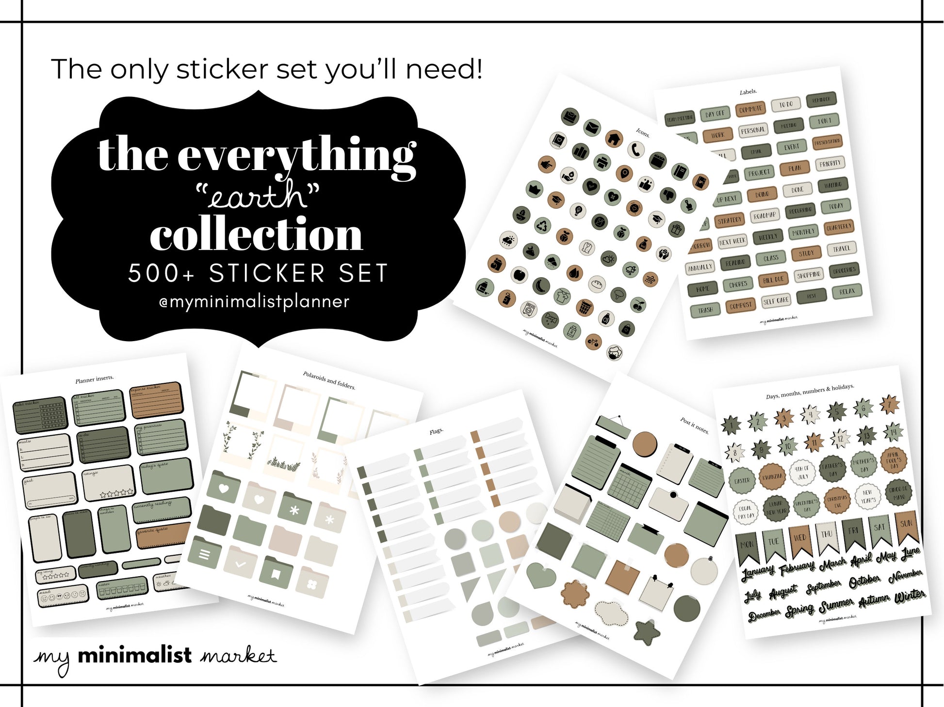 Everything Sticker Set "Earth Collection", Digital Planning & Bujo, Labels, Seasons, Holidays, Self Care, Icons and Post-its, Precropped
