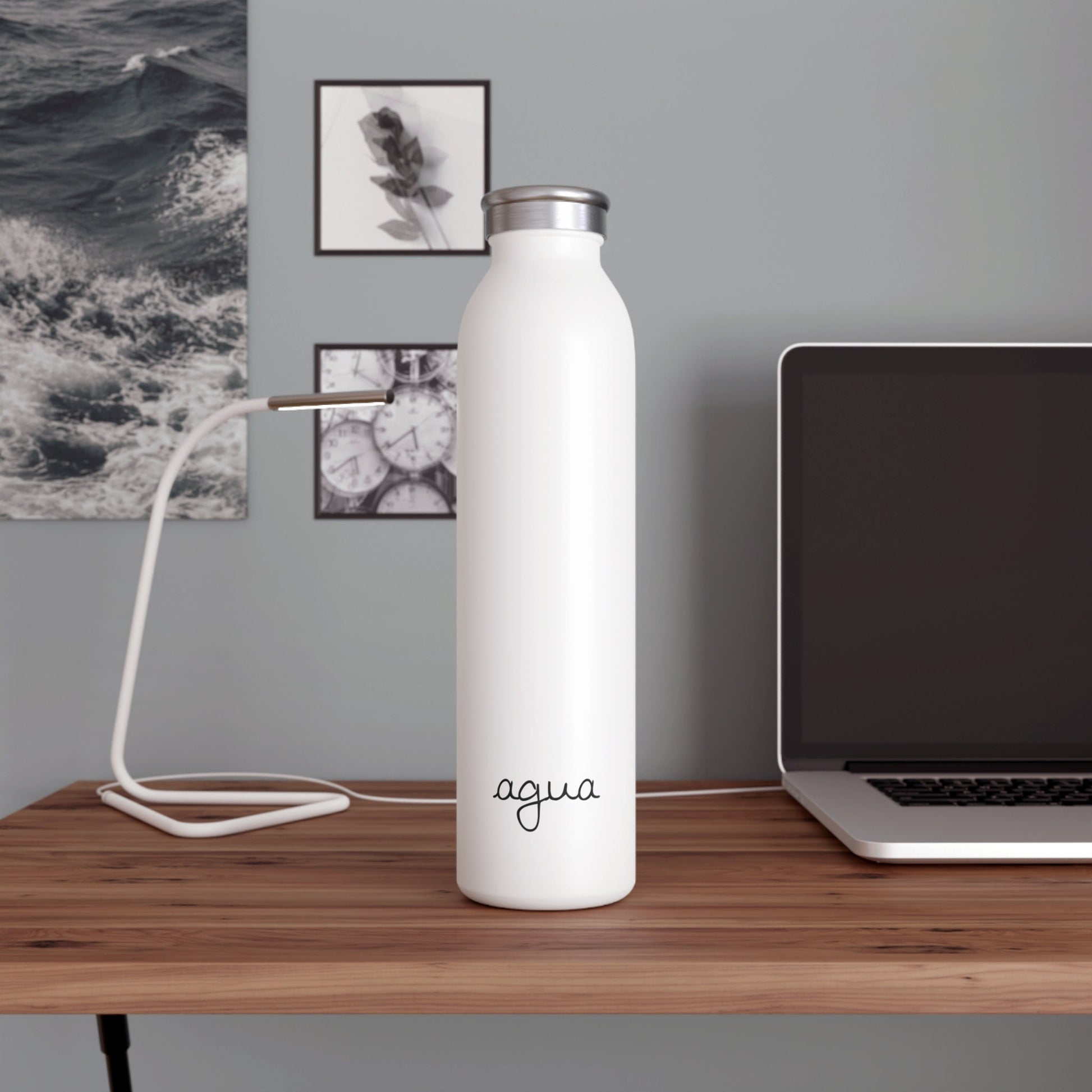 Minimalist Agua Water Reusable Bottle, Black & White Elegant Drinkware