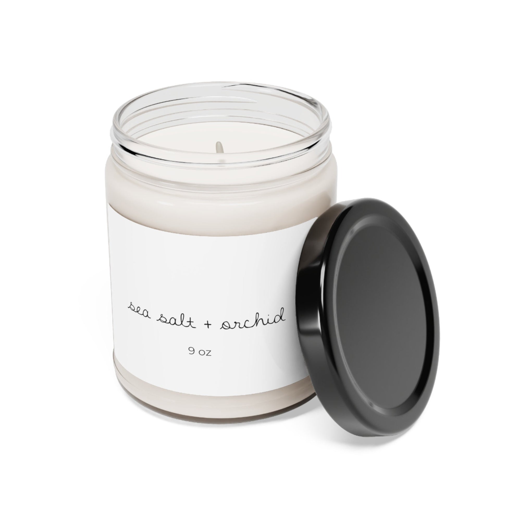 Minimalist Black & White Sea Salt and Orchid Scented Soy Candle, Monochrome Candle Set, 9oz