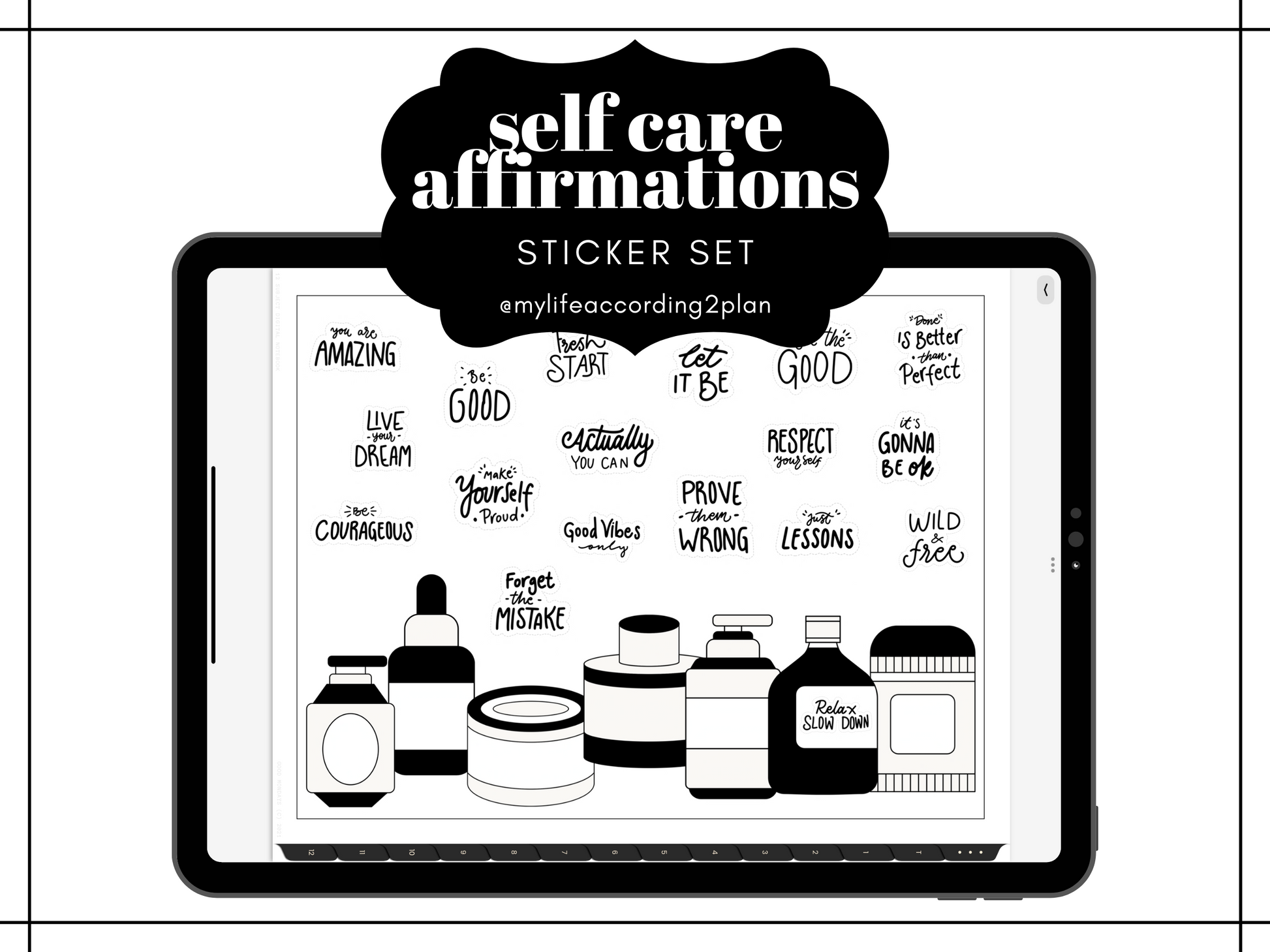 This minimalist digital planner sticker pack is for your everyday use. The Self Care Affirmation labels are perfect to decorate and customize your digital planner or bullet journal using the Goodnotes app.