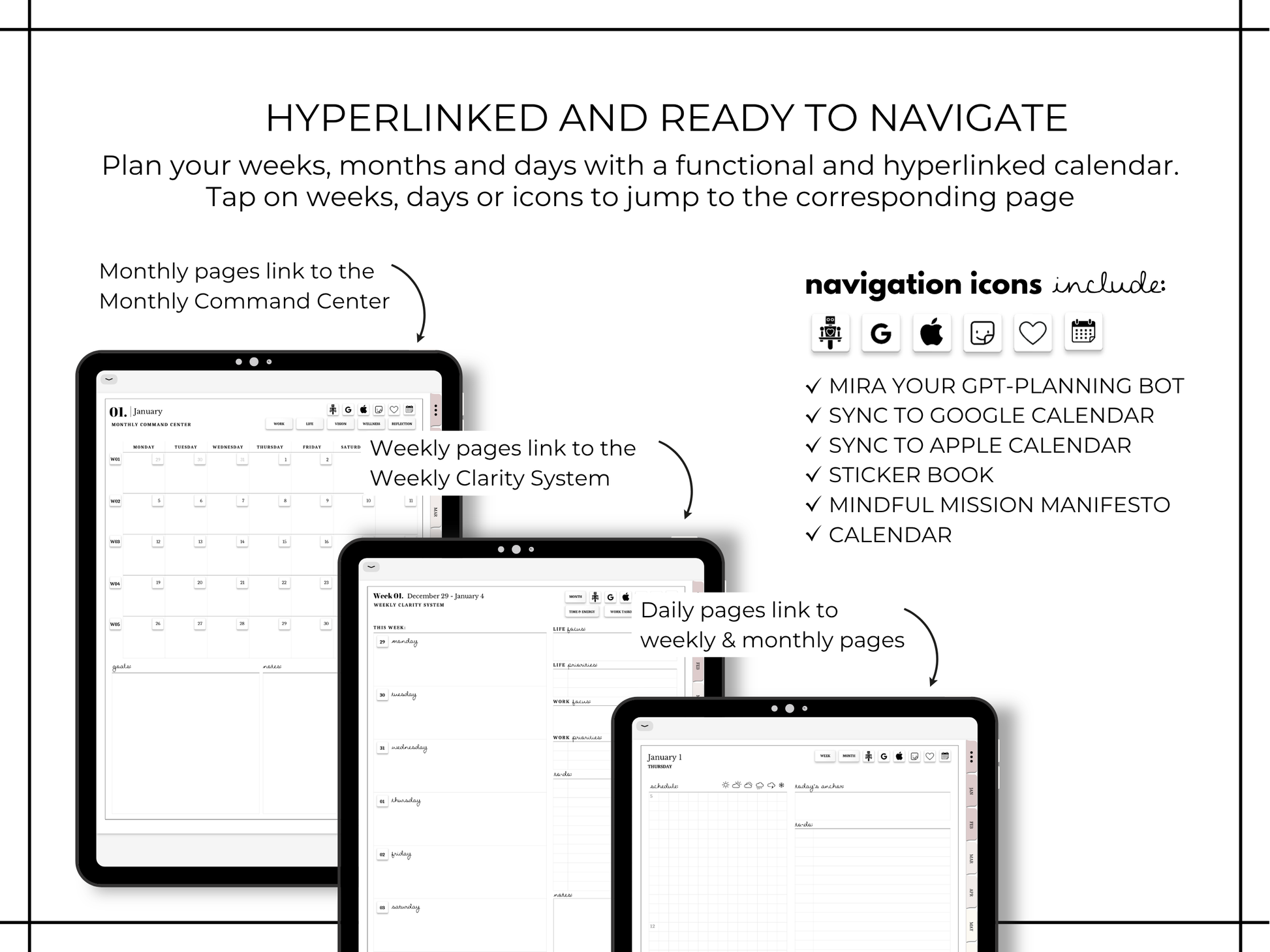 - 2026 hyperlinked annual, monthly, weekly & daily pages